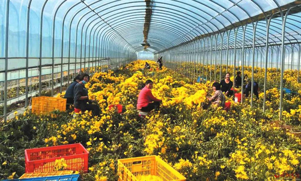 村民們正有條不紊地采摘菊花。