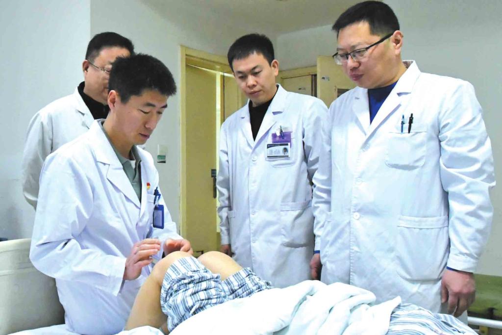 我市與山西醫(yī)科大學(xué)第一醫(yī)院簽署合作共建忻州市人民醫(yī)院框架協(xié)議以來,省級(jí)專家下沉坐診已成常態(tài)。圖為山西醫(yī)科大學(xué)第一醫(yī)院常駐專家、骨科主任韓永斌在市人民醫(yī)院骨科病房查看患者腿部術(shù)后情況。(李潤攝)