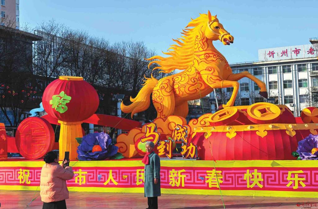 馬年春節(jié)的腳步越來越近了,忻州城區(qū)張燈結(jié)彩,處處洋溢著節(jié)日的喜慶氣氛。圖為市民在城區(qū)日月廣場與馬年迎春花燈合影。(記者張存良攝)