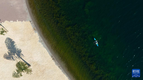 1月27日,游客在云南省玉溪市撫仙湖劃船游玩(無人機照片)。(新華社記者 高詠薇 攝)