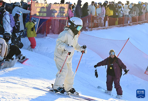 2月25日,滑雪愛好者在新疆阿勒泰將軍山國際滑雪度假區(qū)滑雪。(新華社記者 王菲 攝)