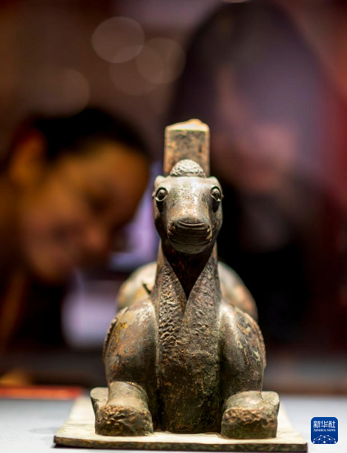 這是展出的人形青銅鎮(zhèn)(4月29日攝)。(新華社記者 魏培全 攝)