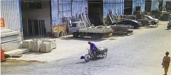 直到上午8點(diǎn)50分左右,一名騎著三輪車的男子經(jīng)過(guò)這里,下車查看后把包撿走了。“他穿著藍(lán)色的工作服,戴著個(gè)紅色的安全帽,把包打開看了下,然后就撿起來(lái)放到了車上?!?/p>
