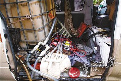 經審訊,嫌疑人陳某曾因盜竊柴油被判入獄,在獄中認識張某、張某某。3人出獄后,在瀘州買了一輛二手福田面包車,經過精心改裝并換上假牌照,往返于川渝兩地,在G93渝瀘高速各服務區(qū)專門盜竊貨車油箱里的柴油。偷油設備自動化,改裝車內裝著好幾個大油桶,用一根塑料管,通過一個油泵,把貨車油箱里的油直接抽到桶里。油泵電源由蓄電池提供,為避免發(fā)動機聲音過大,油泵還用舊衣服層層包裹。馬力大的油泵,1分鐘就能把貨車滿滿一箱油抽光。為了更快抽油,嫌疑人甚至并聯(lián)4個大油泵。與以往拿著吸油管的小賊比,這樣的裝備偷油速度快10倍,比加油速度快幾倍。6月以來,該團伙僅在江津范圍內就瘋狂作案20余起,盜得柴油5000余升,涉案金額數(shù)萬元。陳某落網(wǎng)當天,警方在面包車上查獲的1000余升柴油是陳某獨自在珞璜服務區(qū)連續(xù)作案5起盜得。