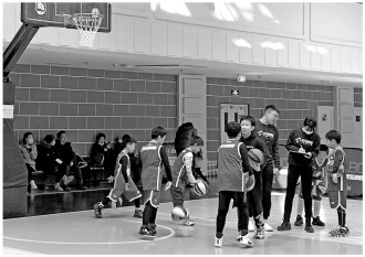 2月26日,北京市海淀區(qū)某籃球培訓(xùn)課上,孩子們?cè)诰毩?xí)打籃球。