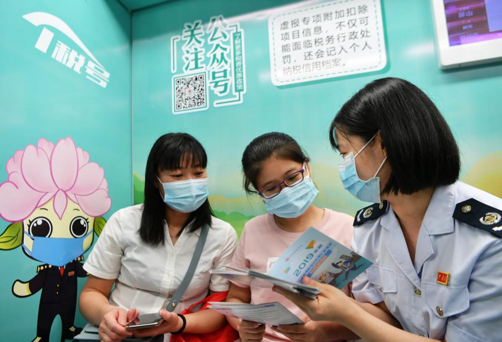 稅務(wù)工作人員向市民宣傳個人所得稅及年度匯算相關(guān)知識。新華社記者魏培全攝