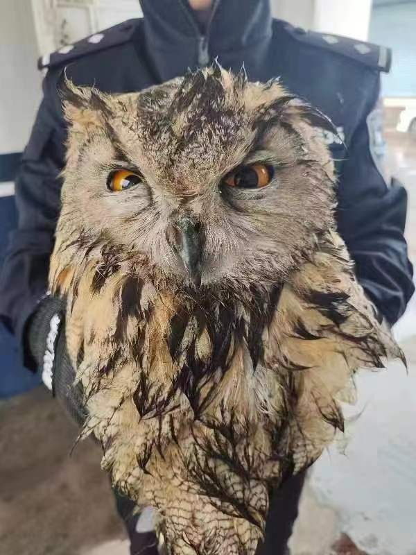 民警立即到達現(xiàn)場,仔細查看后發(fā)現(xiàn)貓頭鷹翅膀受傷,因巡鎮(zhèn)鎮(zhèn)沒有專門的野生動物救助站,于是將其送往當?shù)孬F醫(yī)站治療。