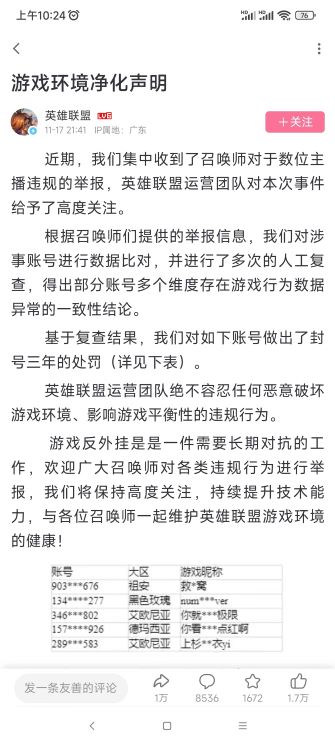 近日,英雄聯(lián)盟主播被質(zhì)疑使用腳本鬧得沸沸揚(yáng)揚(yáng)。在經(jīng)歷網(wǎng)友錄屏鑒定、主播自證辯解后,英雄聯(lián)盟官方下場,通過技術(shù)手段多重復(fù)查,幾位大主播求錘得錘終于被封號(hào)三年,大快人心。