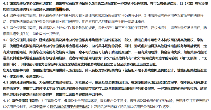 第二,玩家有義務(wù)遵守游戲規(guī)則。 所有網(wǎng)游初次進(jìn)入游戲都會(huì)看到一份密密麻麻的游戲服務(wù)協(xié)議,用戶不同意則不能享受游戲內(nèi)容,包括騰訊在內(nèi)運(yùn)營商為什么都這么做?因?yàn)閲乙?guī)定。根據(jù)《網(wǎng)絡(luò)安全法》《互聯(lián)網(wǎng)信息服務(wù)管理辦法》《互聯(lián)網(wǎng)用戶賬號(hào)信息管理規(guī)定》,互聯(lián)網(wǎng)信息服務(wù)提供者應(yīng)當(dāng)依照法律法規(guī)有關(guān)規(guī)定,制定和公開互聯(lián)網(wǎng)用戶賬號(hào)管理規(guī)則、平臺(tái)公約,與用戶簽訂服務(wù)協(xié)議,明確賬號(hào)信息注冊(cè)、使用和管理相關(guān)權(quán)利義務(wù)。玩家使用賬號(hào)如果違反法律法規(guī)、用戶協(xié)議的,互聯(lián)網(wǎng)信息服務(wù)提供者有權(quán)采取警示提醒、限期改正、限制賬號(hào)功能、暫停使用、關(guān)閉賬號(hào)、禁止重新注冊(cè)等處置措施。 網(wǎng)絡(luò)游戲的壽命是有限的,一如我們的青春。如果你真的熱愛電子競技,請(qǐng)不要使用外掛。當(dāng)你老了想起曾經(jīng)游戲陪伴度過的青春,回憶里浮現(xiàn)的恰好應(yīng)當(dāng)是一場公平公正的較量、一群配合默契的隊(duì)友、一次驚心動(dòng)魄的翻盤。問心無愧拼盡全力,足矣。 (責(zé)任編輯:蔡文斌) |