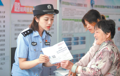 江蘇省揚(yáng)州市,民警為市民講解國家網(wǎng)絡(luò)安全知識(shí)。 孟德龍攝(影像中國)