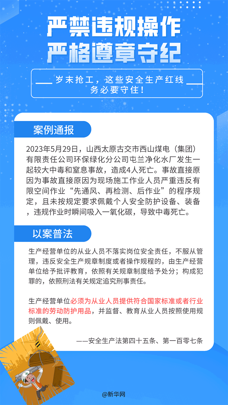 12月1日至7日是第七個安全生產(chǎn)法宣傳周,又恰逢歲末年初,生產(chǎn)經(jīng)營建設活動進入旺季,一些企業(yè)搶工期、趕進度,人們思想管理容易產(chǎn)生松懈麻痹的疲勞期,也是生產(chǎn)事故的高發(fā)期。以下是近期各地通報的部分案例,希望大家銘記安全,警鐘長鳴!