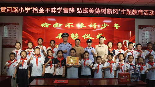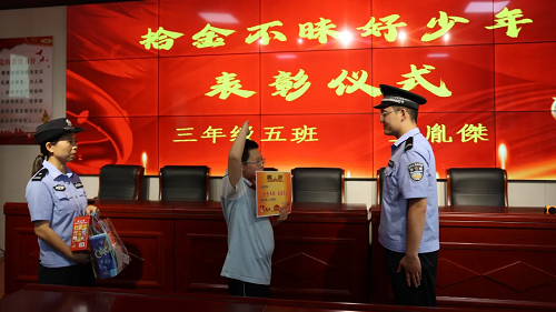 近日,河曲縣公安局民警帶著感謝信和獎品走進黃河路小學,為拾金不昧的王同學舉行了一場特別的“頒獎儀式”,用滿滿的儀式感鼓勵同學們大力弘揚社會正能量。