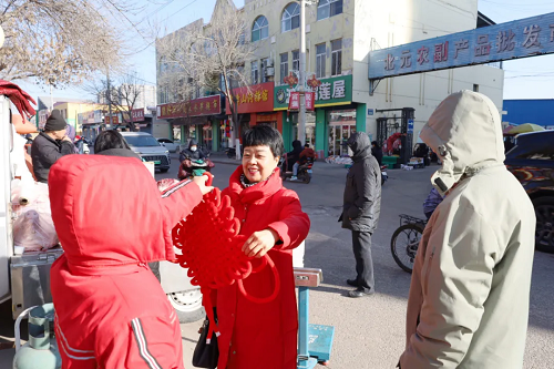 正在購(gòu)置年貨的河曲法院調(diào)解員王永梅在回家路上,正好碰到帶著一家老小置辦年貨的大明。大明女兒毛毛一眼認(rèn)出了王永梅。
