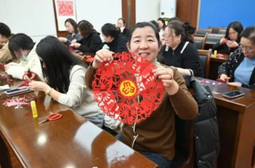 此次活動特邀五臺非遺剪紙傳承人王森煒現(xiàn)場教學(xué),從折疊技巧到紋樣設(shè)計,從鏤空雕刻到細(xì)節(jié)精修,干警們在老師的指導(dǎo)下沉浸式感受剪紙藝術(shù)的魅力。紅紙翻飛間,一幅幅寓意幸福吉祥、展現(xiàn)女性力量的剪紙作品逐漸成型。指尖流淌的不僅是傳統(tǒng)技藝,更是檢察女性剛?cè)岵?jì)、匠心獨(dú)運(yùn)的精神底色。