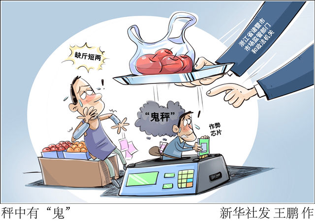 一臺(tái)小小的“鬼秤”,不僅侵害群眾合法權(quán)益,更有損公平誠(chéng)信的市場(chǎng)環(huán)境。執(zhí)法部門(mén)要主動(dòng)作為,為公序良俗撐腰,讓群眾利益得到保障;另一方面,遭遇缺斤短兩問(wèn)題,消費(fèi)者也不要忍氣吞聲,多和不法現(xiàn)象“較真”:買(mǎi)完菜上“安心秤”復(fù)稱一下,對(duì)不法行為堅(jiān)決舉報(bào)。大家合力,一起讓“鬼秤”無(wú)處遁形。