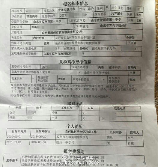 得知自己沒有被錄取之后常升立即將這一消息告訴了一直很關(guān)照自己的遲老師,這件事情也讓從事體育教育多年的遲老師十分不理解。帶著疑問,師生二人乘火車直接到了濟南向省招考辦尋求解釋,通過對考生“信息及志愿填報情況”的調(diào)取,遲老師和常升都驚呆了,原來常升的志愿被修改了,原本填報的陜西師范大學被改成了魯東大學,而且一連改了兩次,也就是說,即使常升當時發(fā)現(xiàn)志愿被篡改也改不回來,因為考生的志愿最多可以修改兩次。