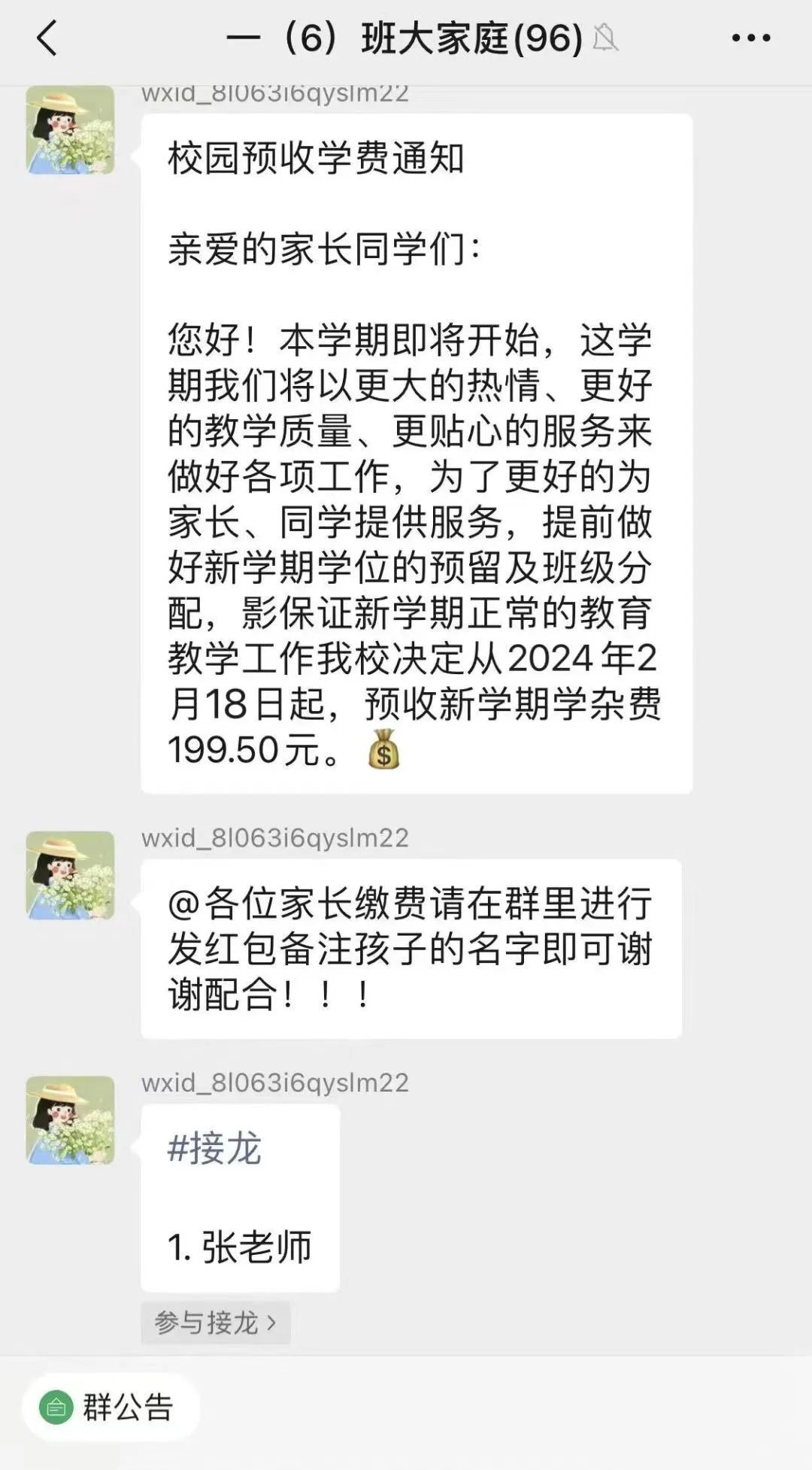 在班級群內發(fā)送收款接龍