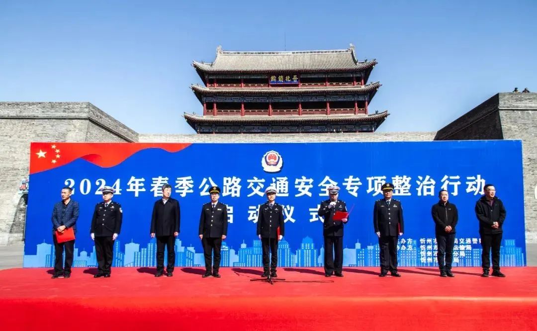 3月20日上午,忻州市2024年春季公路交通安全專項整治行動在古城北城門樓廣場正式拉開帷幕。市公安局交警支隊聯(lián)合市交通運輸局、市公路分局、市教育局舉行了啟動儀式和宣傳活動。忻州市公安局交警支隊支隊長劉元豐、副支隊長張全勇、秩序科科長白海龍,忻州市交通運輸綜合行政執(zhí)法隊隊長王卓斌、副隊長于雷,忻州市教育局安全科科長段進元,忻州市公路分局養(yǎng)路科科長吳俊、副科長趙峰出席啟動儀式。交警支隊直屬各大隊、執(zhí)法小分隊,交通運輸綜合行政執(zhí)法隊、客運企業(yè)、運輸企業(yè)、駕校代表及媒體記者共200余人參加了活動。