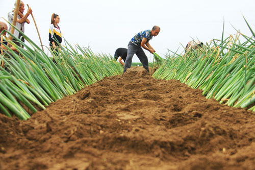 7月9日,原平市小河村民正在小麥收割田里回茬栽大蔥。原平市調(diào)整種植結(jié)構(gòu),適應(yīng)市場變化收到了較好的效果。在平川地區(qū),根據(jù)無霜期時間長,大力發(fā)展兩茬田種植,糧食與蔬菜得到均衡,既確保增產(chǎn)和市民菜籃子蔬菜供應(yīng),又促進了農(nóng)民增收。(吉建平 攝)