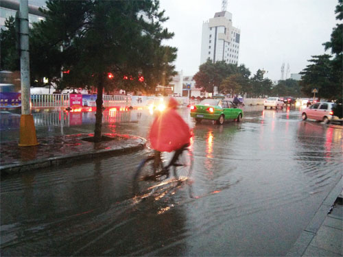 7月19日暴雨中的長征西街(許凈 攝)