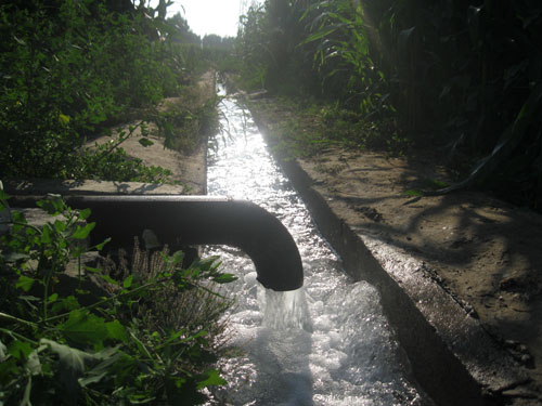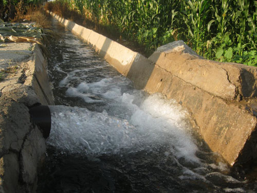 8月1日,河曲縣南園村農(nóng)民正在為玉米和回茬蔬菜澆水。多年來,該村十分重視水利建設,建成黃河提水泵站4座、打機井24眼,修管灌15000米、渠灌10000米,形成了完備的灌溉體系,為農(nóng)業(yè)發(fā)展奠定了堅實基礎。如果全部設施同時運行,3天即可澆灌全村3400畝水地。今年,蔬菜已澆過7畝次,玉米3畝次。(賈金理 攝)