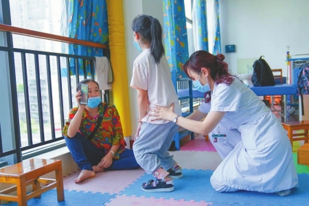 在愛心基金的幫助下,小春梅獲得了到成都求醫(yī)的機會?;叵肫鸢肽昵俺跻娦〈好返那榫?,成都市中西醫(yī)結(jié)合醫(yī)院兒童康復中心醫(yī)生孔勉記憶猶新:媽媽用布襁褓背著小春梅,小姨陪在一旁,一家人眼里飽含小心翼翼的希望,又藏不住多次失望后的疑慮。