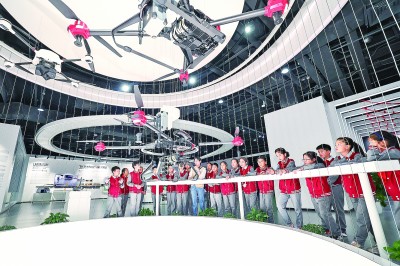 學(xué)生們在浙江省湖州市德清縣地理信息科技館學(xué)習(xí)無人機(jī)地理測繪知識。新華社發(fā)