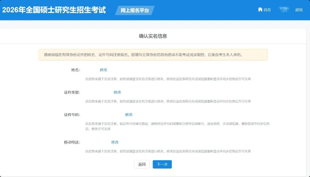 確認實名注冊信息后,考生要按照《2026年全國碩士研究生招生工作管理規(guī)定》要求填寫正確的學歷(學籍)信息。