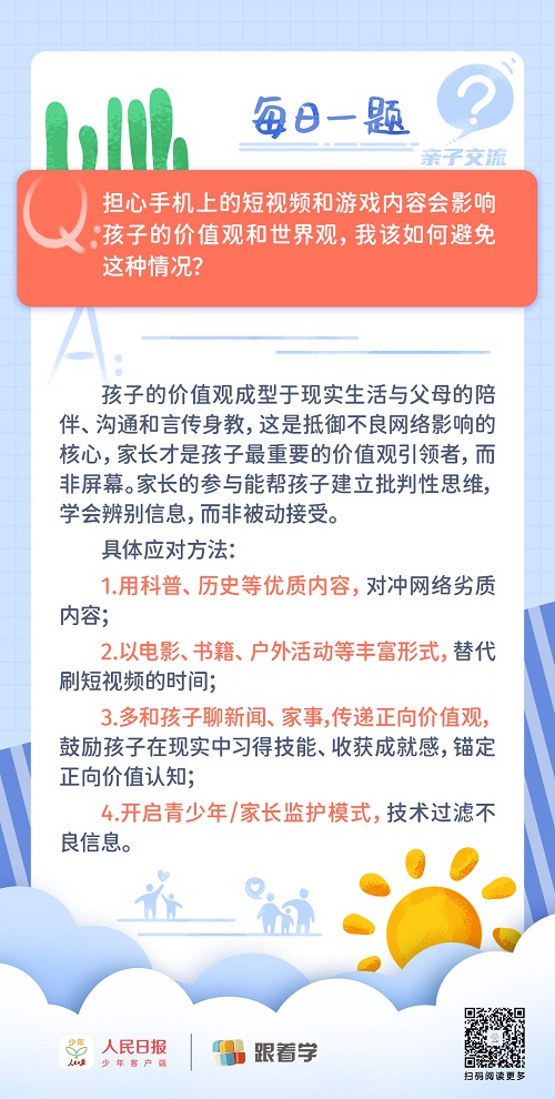 每日一題丨家長該如何避免手機(jī)上的內(nèi)容影響孩子的價(jià)值觀和世界觀?