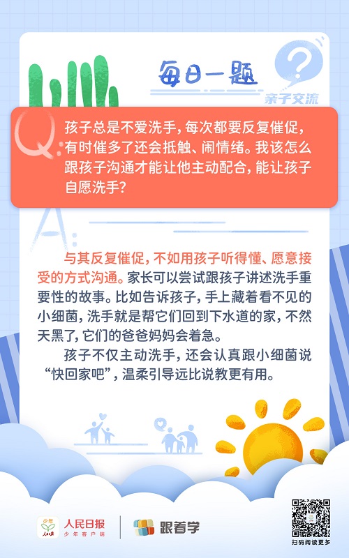 每日一題丨孩子不愛洗手,催了也不聽,該怎么引導(dǎo)?