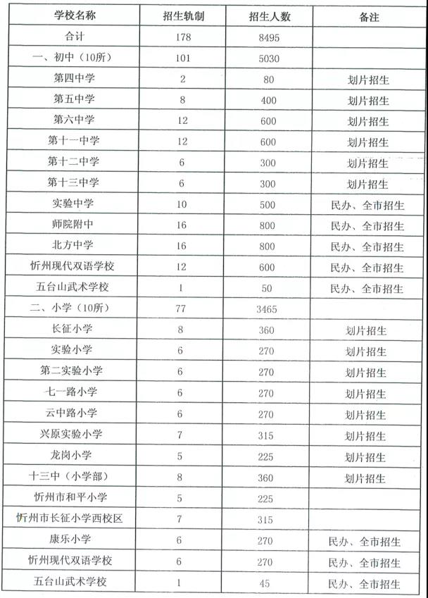 4.忻州市2020年市直義務(wù)教育階段學(xué)校招生計(jì)劃
