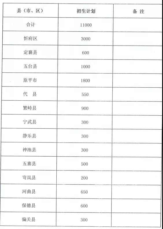 3.忻州市2020年職業(yè)高中分縣招生計(jì)劃