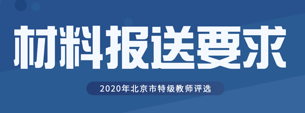 各區(qū)教委及市教委直屬事業(yè)單位請(qǐng)于2020年8月7日前將推薦名冊(cè)及個(gè)人申報(bào)材料按照以下要求報(bào)北京市教育系統(tǒng)人才交流服務(wù)中心: 01 個(gè)人材料按每人一袋準(zhǔn)備,并在材料袋封面注明編號(hào)(編號(hào)按申報(bào)者所在區(qū)、學(xué)校類別、申報(bào)學(xué)科順序編寫,如:東城區(qū)中學(xué)數(shù)學(xué)第一號(hào),編號(hào)為:東中數(shù)1號(hào))、姓名、單位、學(xué)科,具體材料包括: ? 北京市特級(jí)教師申報(bào)表*一式7份; ? 相關(guān)獲獎(jiǎng)、最高學(xué)歷、專業(yè)技術(shù)職務(wù)證書(shū)等證明材料復(fù)印件一式一份(原件由區(qū)教委主管部門審核),代表本人業(yè)務(wù)水平的論文或論著不超過(guò)3件(均需原件); ? 北京市特級(jí)教師推薦人選民主測(cè)評(píng)結(jié)果表*。 02 北京市特級(jí)教師人選推薦名冊(cè)*1份(請(qǐng)用excel制表,并報(bào)送電子版)。 (標(biāo)注 * 號(hào)的文件請(qǐng)登錄北京市教委官網(wǎng) 首頁(yè)> 政務(wù)公開(kāi) > 最新信息公開(kāi) 下載查看。)