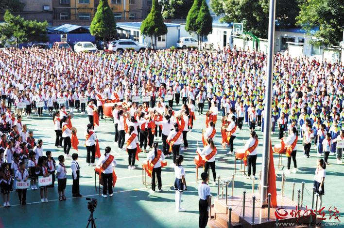 “老師,您辛苦了!”活動現場,少先隊員為前來上課的老師們以及馬路邊維持交通秩序的交警叔叔、護學崗志愿者鞠躬敬禮并戴上鮮艷的紅領巾,表達了同學們對老師、對長輩最誠摯的敬意?!爸x謝孩子們,這是我們應該做的。祝同學們健康成長!”老師、叔叔阿姨回以鼓勵的話語。大會對學校師德標兵、模范教師、優(yōu)秀班主任、先進工作者進行了表彰。