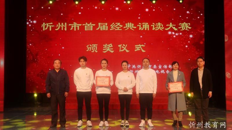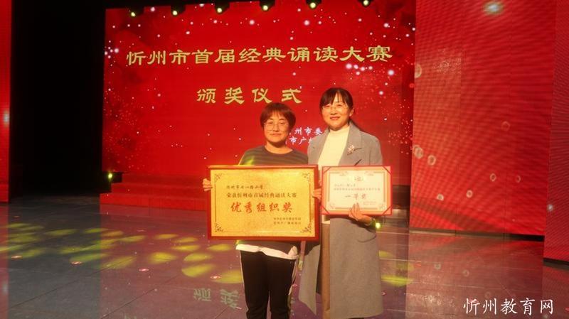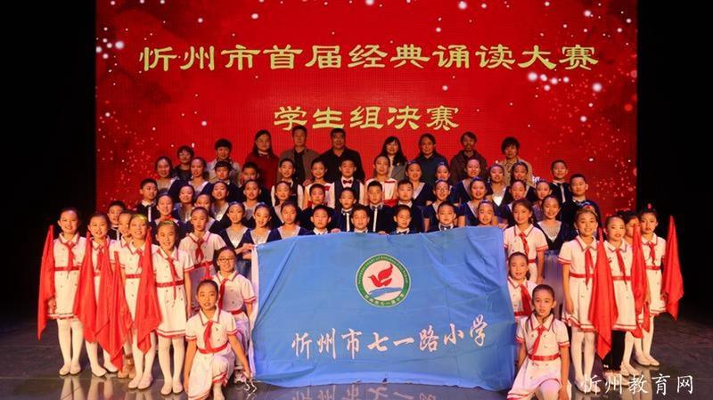 “共讀中華經(jīng)典,聆聽古詩書韻”。由中共忻州市委宣傳部主辦,忻州市廣播電視臺承辦 “忻州市首屆經(jīng)典誦讀大賽”經(jīng)過初賽海選和緊張激烈的復(fù)賽和決賽,于11月1日落下帷幕。本次比賽學(xué)生組共有四十一個參賽節(jié)目,經(jīng)過角逐,有十個節(jié)目進入了決賽。決賽采取評委當場亮分,現(xiàn)場點評的方式,最終評出一等獎一名,二等獎二名,三等獎三名,最佳風采獎四名。七一路小學(xué)以98.51分的成績奪冠,榮獲學(xué)生組一等獎。同時學(xué)校也榮獲優(yōu)秀組織獎。