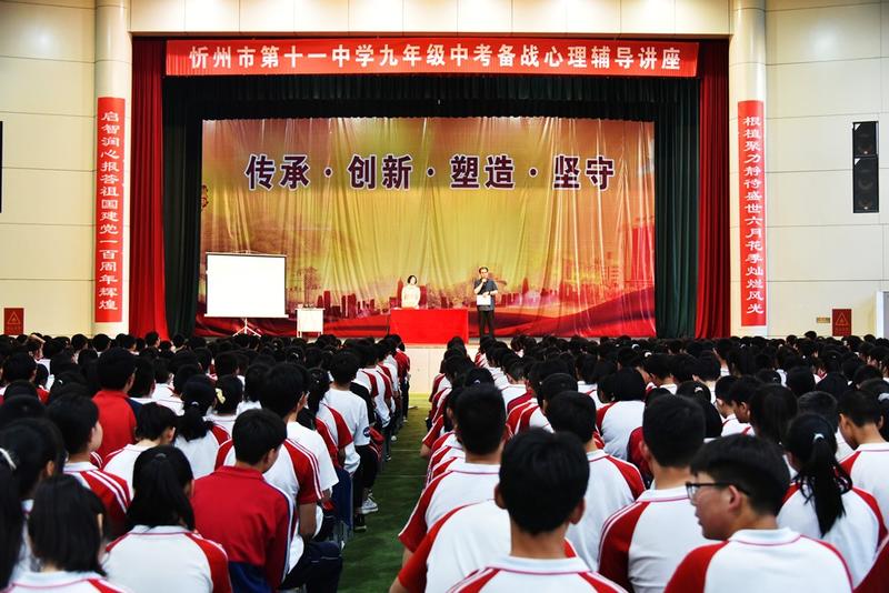 本網(wǎng)訊 6月3日晚,忻州十一中特邀資深心理專家張廣梅老師在文體苑為九年級學(xué)生做了中考備戰(zhàn)心理輔導(dǎo)講座。校長張云長主持講座并講話。