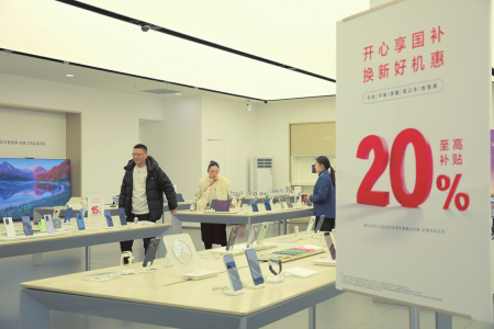 2月27日,太原市杏花嶺區(qū)一數(shù)碼產(chǎn)品店內(nèi),“國補(bǔ)”海報(bào)擺放在醒目位置,前來咨詢購買的市民絡(luò)繹不絕。隨著2025年“國補(bǔ)”政策持續(xù)深入實(shí)施,省城消費(fèi)市場迎來一波“換機(jī)熱”。本報(bào)記者王瑞瑞攝