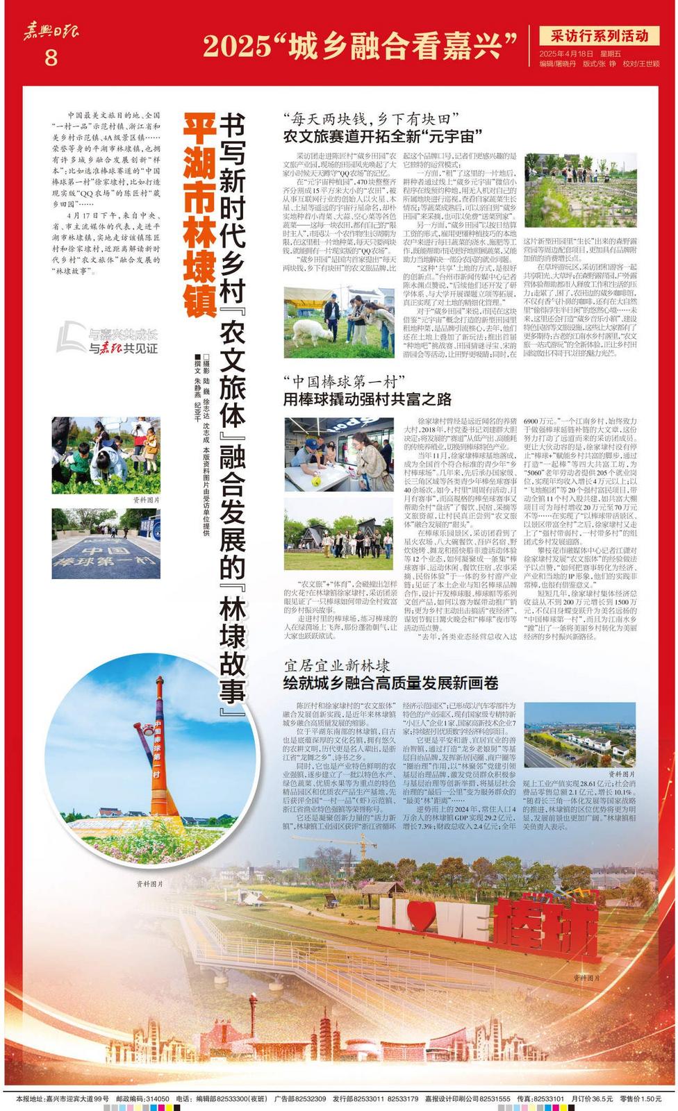 中國最美文旅目的地、全國“一村一品”示范村鎮(zhèn)、浙江省和美鄉(xiāng)村示范鎮(zhèn)、4A級景區(qū)鎮(zhèn)……榮譽(yù)等身的平湖市林埭鎮(zhèn),也擁有許多城鄉(xiāng)融合發(fā)展創(chuàng)新“樣本”:比如選準(zhǔn)棒球賽道的“中國棒球第一村”徐家埭村,比如打造現(xiàn)實(shí)版“QQ農(nóng)場”的陳匠村“葳鄉(xiāng)田園”……