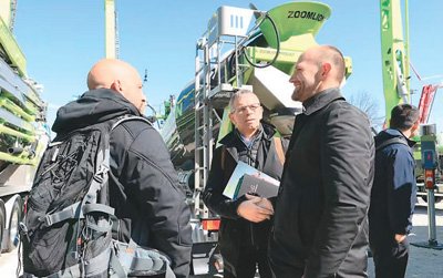 4月初,在德國慕尼黑舉辦的2025年寶馬展上,外國采購商在談?wù)撝袊蛊?。譚 為攝(人民視覺)