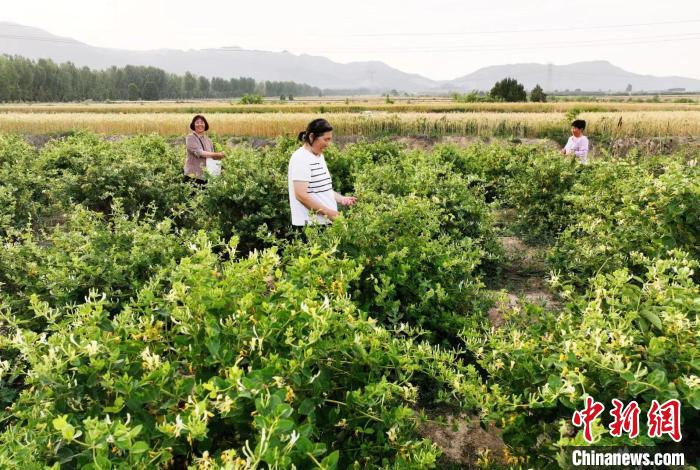 “三夏”大忙時節(jié),呂梁山脈姑射山下,山西省運(yùn)城市新絳縣澤掌鎮(zhèn)喬溝頭、吳嶺莊、光村等村,千畝金銀花喜獲豐收,花農(nóng)們正采摘搶收。近年來,當(dāng)?shù)匾浴盎ā睘椤懊健?,持續(xù)加大果、藥等產(chǎn)業(yè)發(fā)展,成為鄉(xiāng)村振興“新動力”。