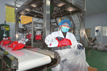 11月12日,襄遇欣安農(nóng)業(yè)發(fā)展有限公司包裝車(chē)間內(nèi),工人熟練地將凍干山楂成品送入稱(chēng)重包裝機(jī)。近年來(lái),定襄縣辛安村大力發(fā)展村辦企業(yè),為當(dāng)?shù)禺a(chǎn)業(yè)發(fā)展、鄉(xiāng)村振興注入活力。