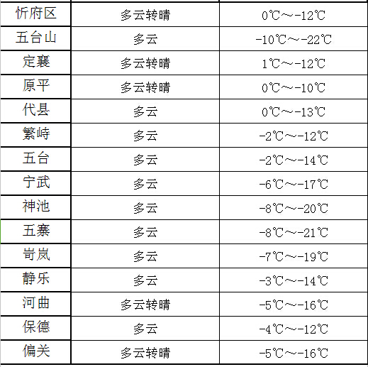 附:忻州市各縣(市、區(qū))天氣預(yù)報(bào)