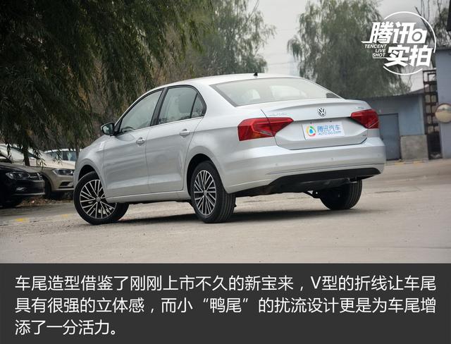 車身側(cè)面沒有做太大改變,延續(xù)了老款車型簡單流暢的線條感。后視鏡的造型也更富棱角,側(cè)轉(zhuǎn)向燈從翼子板移至后視鏡,同時采用了LED光源。門把手采用了與車身同色的設(shè)計(jì),上方增加的鍍鉻裝飾條恰到好處。雙色多幅輪轂是一大亮點(diǎn),造型動感時尚。采用韓泰KINERGY EX輪胎,尺寸為195/55 R16。制動系統(tǒng)為前輪通風(fēng)盤式,后輪鼓式。車尾造型借鑒了剛剛上市不久的新寶來,V型的折線讓車尾具有很強(qiáng)的立體感,而小“鴨尾”的擾流設(shè)計(jì)更是為車尾增添了一分活力。立體造型的尾燈與車尾的折線融為一體,內(nèi)部折線的造型,具有很高的辨識度。車尾的數(shù)字180代表這臺車裝配的是1.5L自然吸氣發(fā)動機(jī)。