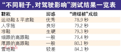 高跟鞋的高跟、拖鞋和涼鞋的不貼腳,常常被認(rèn)為是女司機(jī)發(fā)生交通事故的罪魁禍?zhǔn)?。然而,在《新交?guī)罰款細(xì)則表》中,并沒(méi)有對(duì)駕駛員所穿的鞋有什么處罰條款。拖鞋和高跟鞋,真會(huì)影響駕駛,還是被冤枉的“背鍋俠”,是該有一個(gè)準(zhǔn)確的答案了。此次非常測(cè)試,目的在于找出不同鞋子,對(duì)駕駛的影響。