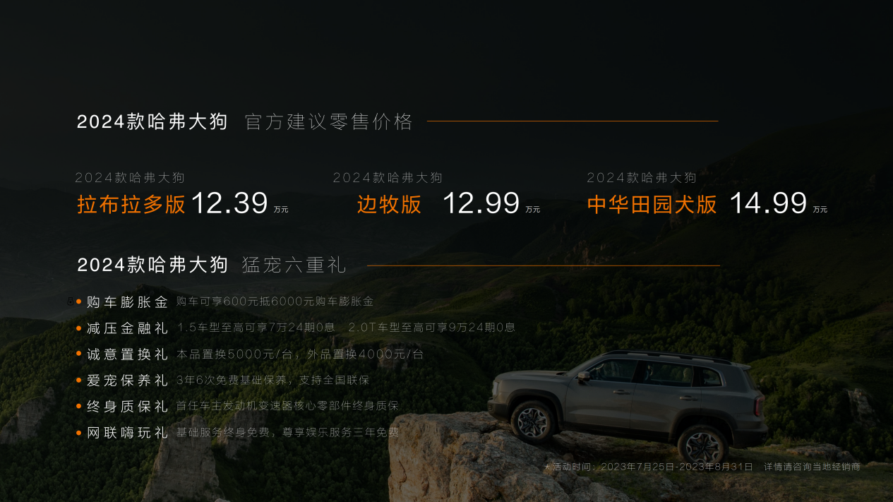 央廣網(wǎng)北京7月26日消息,昨天2024款哈弗大狗正式上市,新車(chē)共推出三款車(chē)型。2024款哈弗大狗不斷超越自我,在外觀、動(dòng)力、智能等方面的全面進(jìn)階,旨在強(qiáng)勢(shì)接力輕越野引領(lǐng)者的產(chǎn)品使命,在穩(wěn)固輕越野賽道產(chǎn)品地位的同時(shí),不斷征服更為廣闊的市場(chǎng)藍(lán)海。