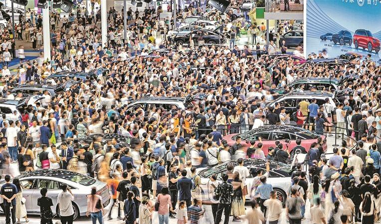 車(chē)展現(xiàn)場(chǎng)人潮涌動(dòng),前兩日迎來(lái)觀眾超30萬(wàn)人次。