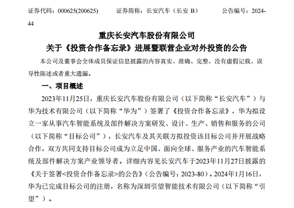 2023年11月25日,長安汽車與華為簽署《投資合作備忘錄》。華為擬設(shè)立一家從事汽車智能系統(tǒng)及部件解決方案研發(fā)、設(shè)計(jì)、生產(chǎn)、銷售和服務(wù)的公司,雙方共同支持目標(biāo)公司成為立足中國、面向全球、服務(wù)產(chǎn)業(yè)的汽車智能系統(tǒng)及部件解決方案產(chǎn)業(yè)領(lǐng)導(dǎo)者。