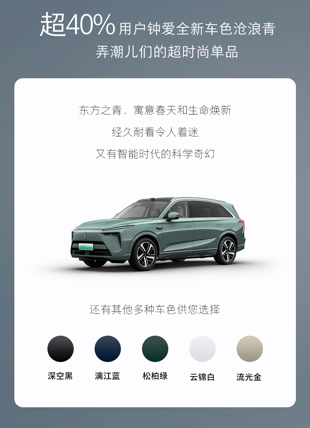 魏牌全新藍(lán)山不僅在智能配置上引領(lǐng)潮流,在外觀設(shè)計(jì)上同樣備受青睞。40.64%的用戶選擇全新車色“滄浪青”。“滄浪青”汲取赤道巨型海浪被陽光折射顯露的青色,給人無限的美妙的想象,在大自然的饋贈(zèng)下,深度融合Coffee GPT靈感設(shè)計(jì),這種獨(dú)特的藍(lán)色象征著春天的生命力,同時(shí)賦予車輛充滿未來科技感的視覺享受。