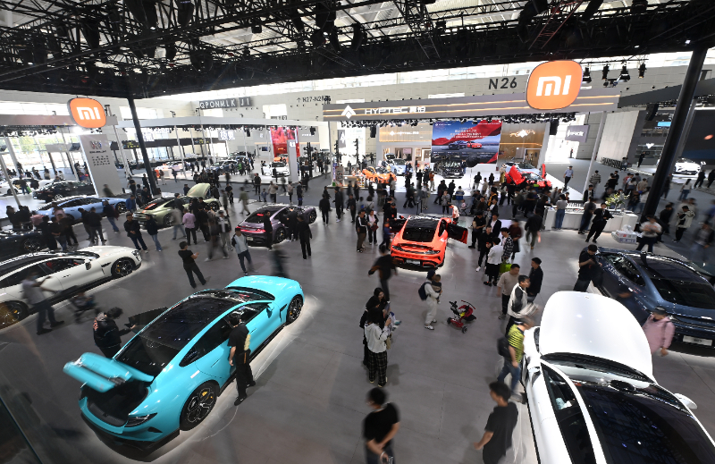 10月4日,在天津市舉辦的2024中國(天津)國際汽車展覽會上,市民在展臺參觀。新華社記者 趙子碩 攝