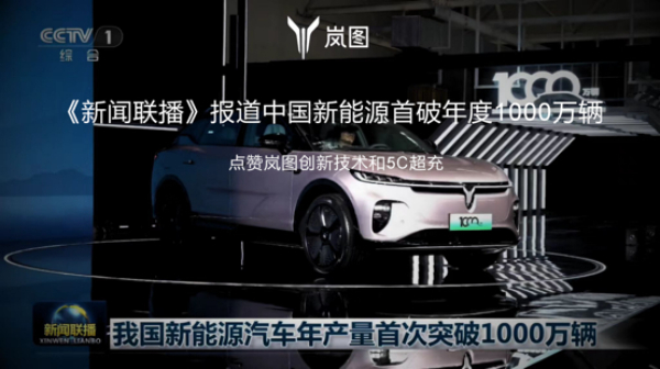 這是兩個月內(nèi),嵐圖汽車第二次出現(xiàn)在央視節(jié)目中。此前,11月14日,2024年中國新能源汽車1000萬輛達成活動在嵐圖汽車云峰工廠盛大舉行,嵐圖知音作為1000萬輛中國新能源汽車下線的代表車型,分別被《朝聞天下》《新聞30分》《新聞聯(lián)播》等節(jié)目報道。